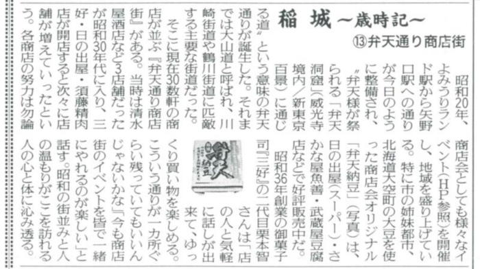 多摩ニュータウンタイムズ平成24年2月1日号のコラム『稲城〜歳時記〜』で弁天通り商店街が紹介されました。