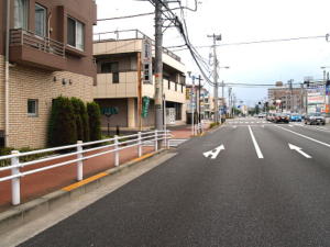 グリーンの標識が立っているんですが、手前のマンションに隠れ気味でちょっと分かりにくい状態です。