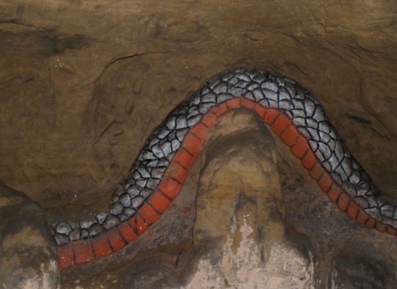 そして反対側の壁を見ると・・・下のように壁を突き抜けて大蛇がのたうっています。