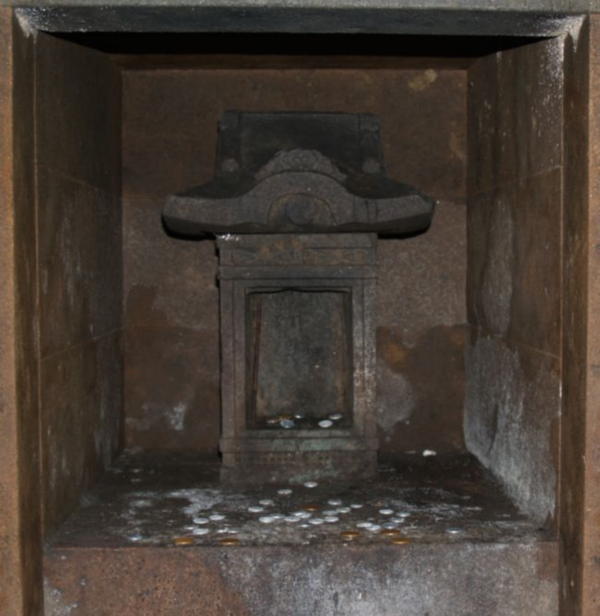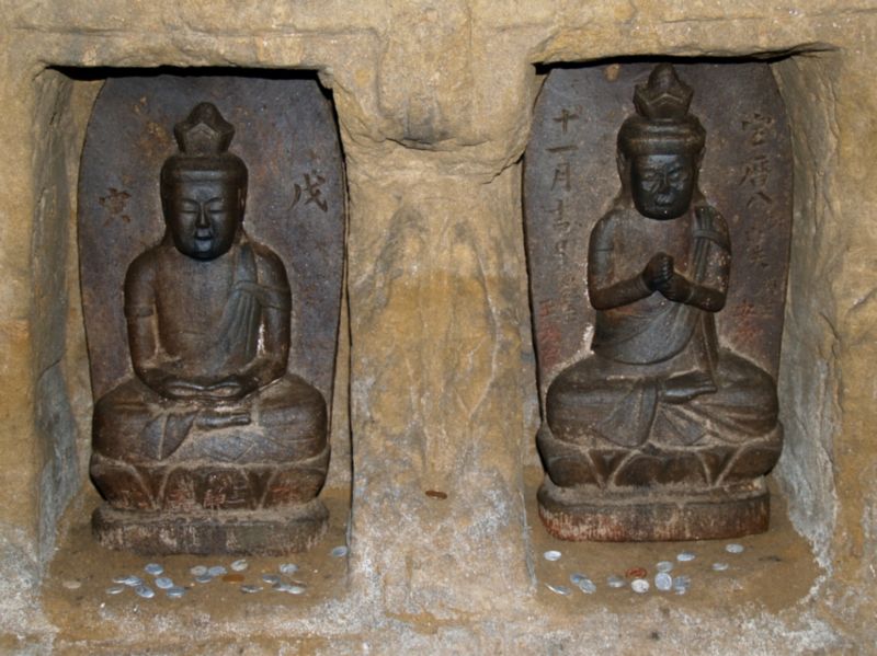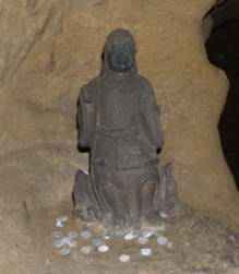 10 蛇の尻尾が岩の中に入っている所の隣には、「金洗いの井戸」があり、そのすぐ隣に文珠菩薩、弘法大師が並んでいます。