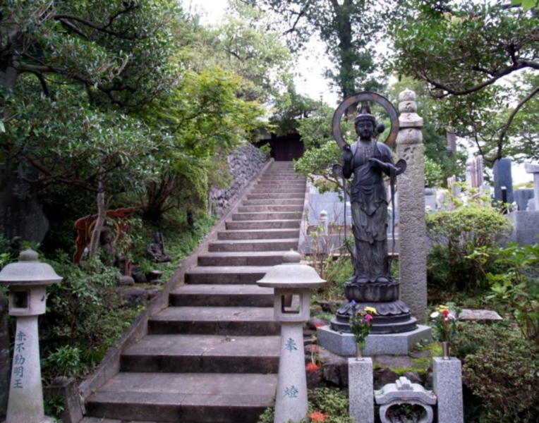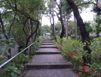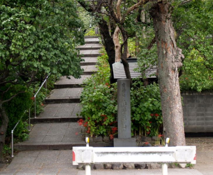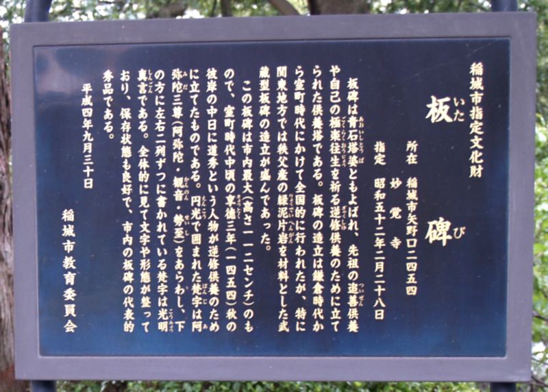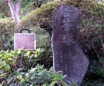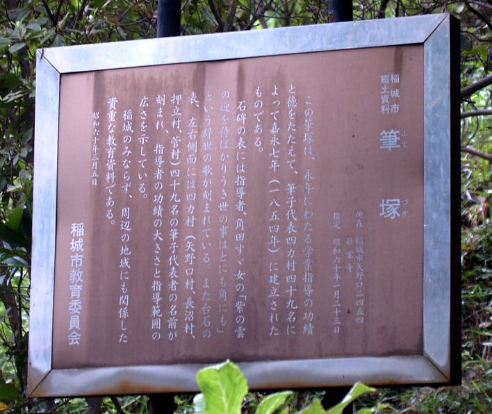 | 本堂の右手奥にある観音堂石段の脇には、市指定文化財の筆塚があります。 | ![]() |