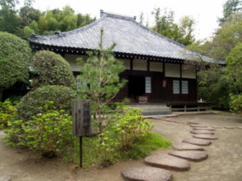 かつて、ここ妙覚寺は梅の名所として知られ、つい最近まで参道上がって左手の、南門の向かいに大きな梅林があり、開花時期にはたくさんの梅の花が楽しめたんですが、市の開発計画の為全て伐採され、跡形もなく消えてしまいました。 今では、南門内側にわずかにあるだけの様です。 |