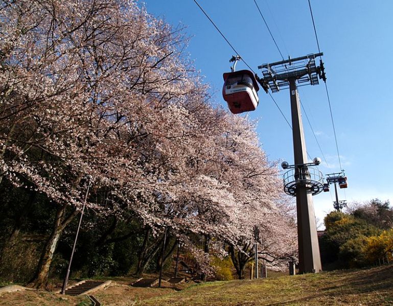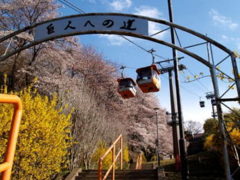 京王よみうりランド駅の南側ロータリーを渡り、ゴンドラ乗り場手前で分岐する『巨人への道』の桜のアーチの下の階段を上がると、