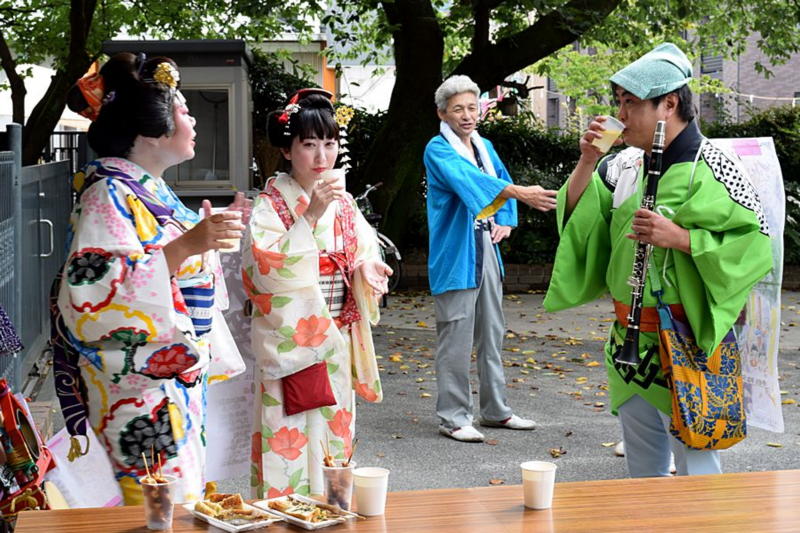 今年は例大祭の50周年という事で、チンドン屋さんが登場し、沿道の人達を楽しませていました。