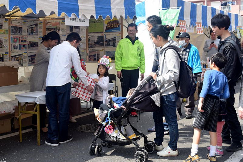 例年通り、商店会のブースでは抽選会が行われ、商店会の金券や各店舗の割引券等が配られていました。