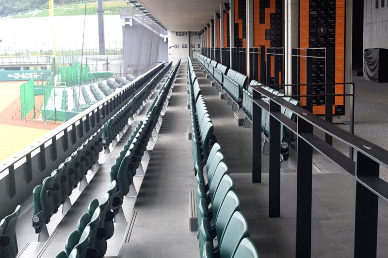 2階席と3階席の様子。 2階席と言ってもダッグアウトの上の高さですので、古い球場の1階席とあまり変わらない感じです。