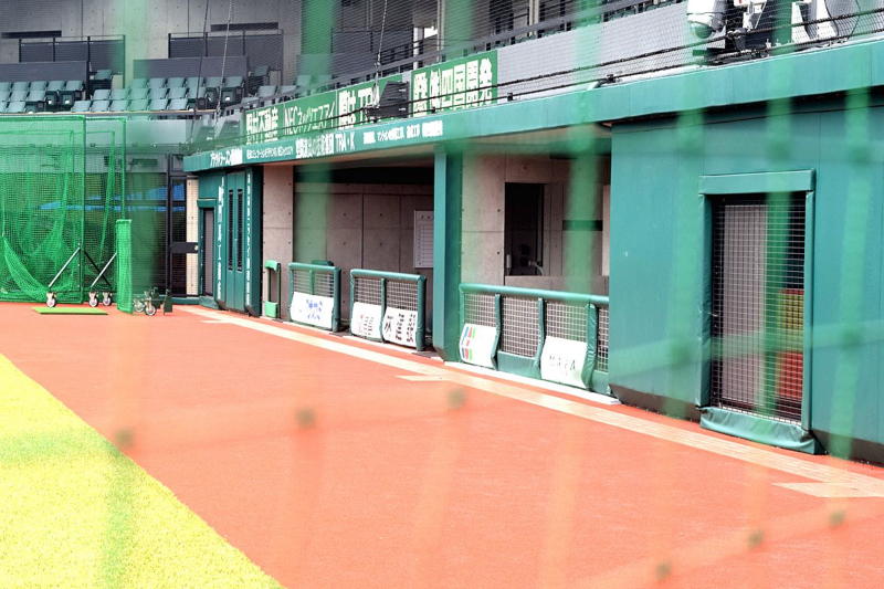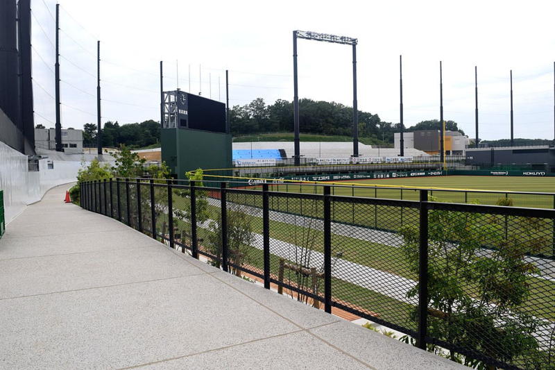 球場内には外周を回れるコンコースが設置されていますが、そこから1塁側ブルペンがのぞけるようになっています。