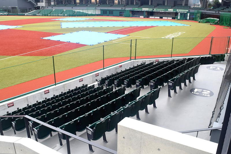 昔の球場とはかなりイメージが違い、ファウルゾーンがすごく狭い為ダイアモンドがすぐ目の前に広がります。 観覧席も4列しかありませんので、後ろの席からでもかなりな臨場感。