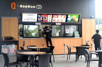 入口階段上がってすぐ右側にドムドムバーカーがありました。