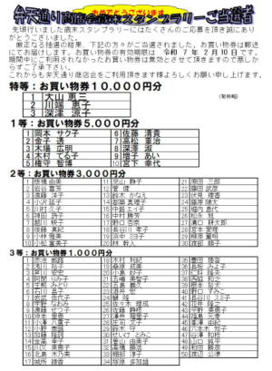賞品の商店会金券は、郵送にてお届けいたします。