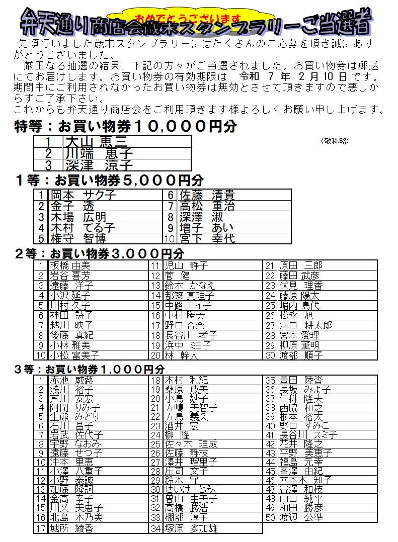 本年も変わらぬご愛顧を承ります様、商店会員一同、